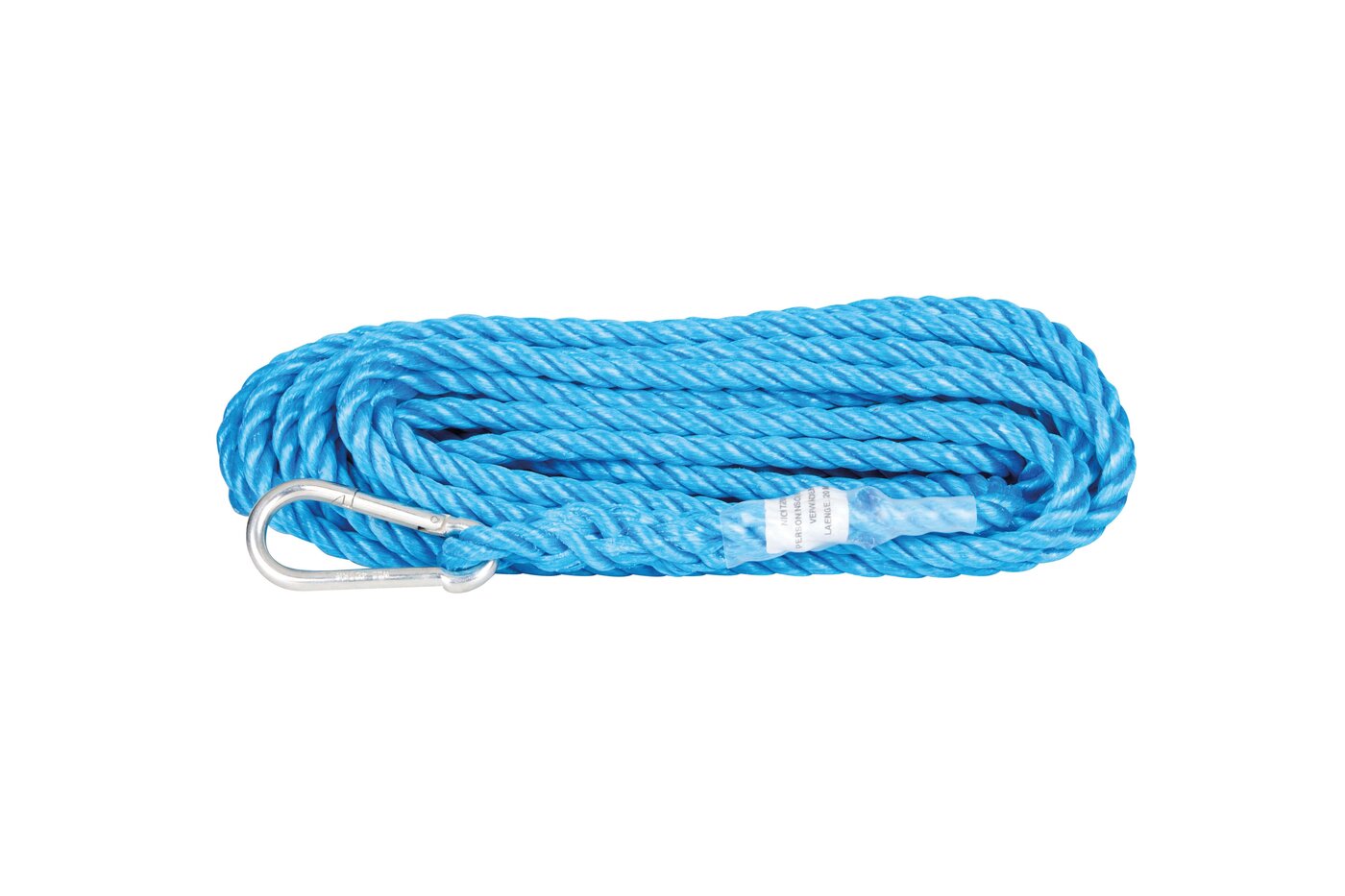 Arbeitsleine aus Polypropylen, gedreht, ein Ende mit Karabiner, anderes Ende mit Schlaufe.
