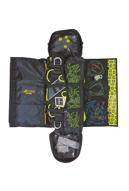 Tragesack für das komplette Industriekletter-Material, jedes Teil hat seinen Platz, unendlich viele Möglichkeiten Material zu verstauen und zu befestigen, robust und logisch aufgebaut.