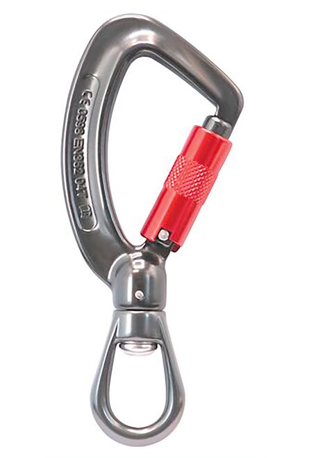TRIPLELOCK-WIRBEL-KARABINER (ALU) 27 KN - GRAU/ROT