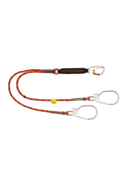 Doppelstrang Verbindungsmittel aus Kernmantelseil mit Bandfalldämpfer.