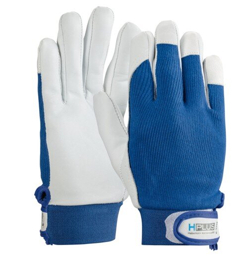 Work glove made of soft, supple nappa leather with a cotton back, combining dexterity with excellent breathability. The elasticated cuff with hook-and-loop closure makes it easy to put on and take off and provides a secure fit at the wrist.
