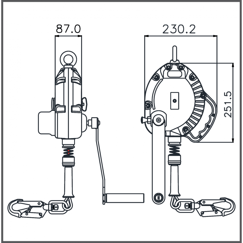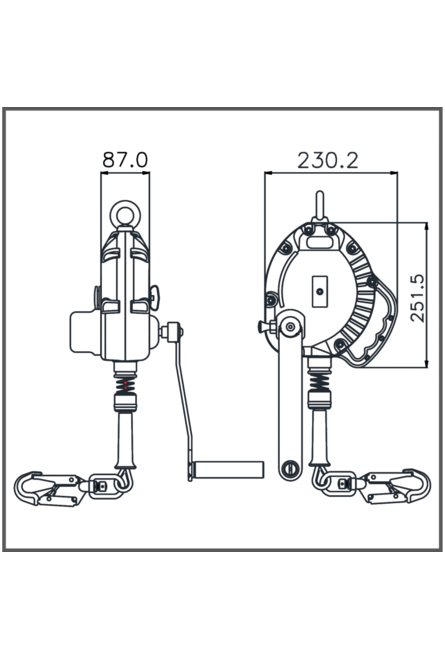 RETRACTABLE FALL ARRESTER IN POLYMER CASING, WIRE ROPE, 10M WITH INTEGRATED RESCUE WINCH