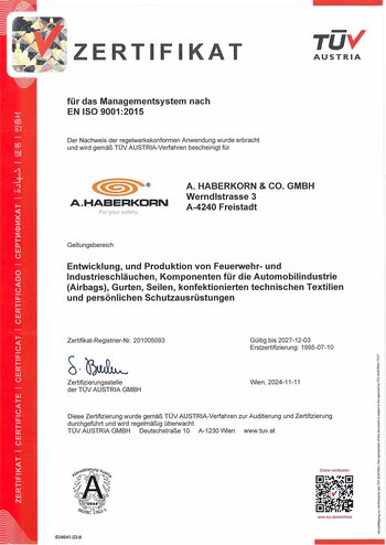 Qualität und Zuverlässigkeit haben im Hause A.HABERKORN oberste Priorität. Seit 1995 haben wir ein Qualitätsmanagement-System nach ISO 9001 installiert, das in allen Bereichen des Unternehmens mit Engagement und Verantwortung gelebt wird. Vom Wareneingang bis zur Auslieferung werden die Produktionsprozesse überwacht, kontrolliert und dokumentiert.