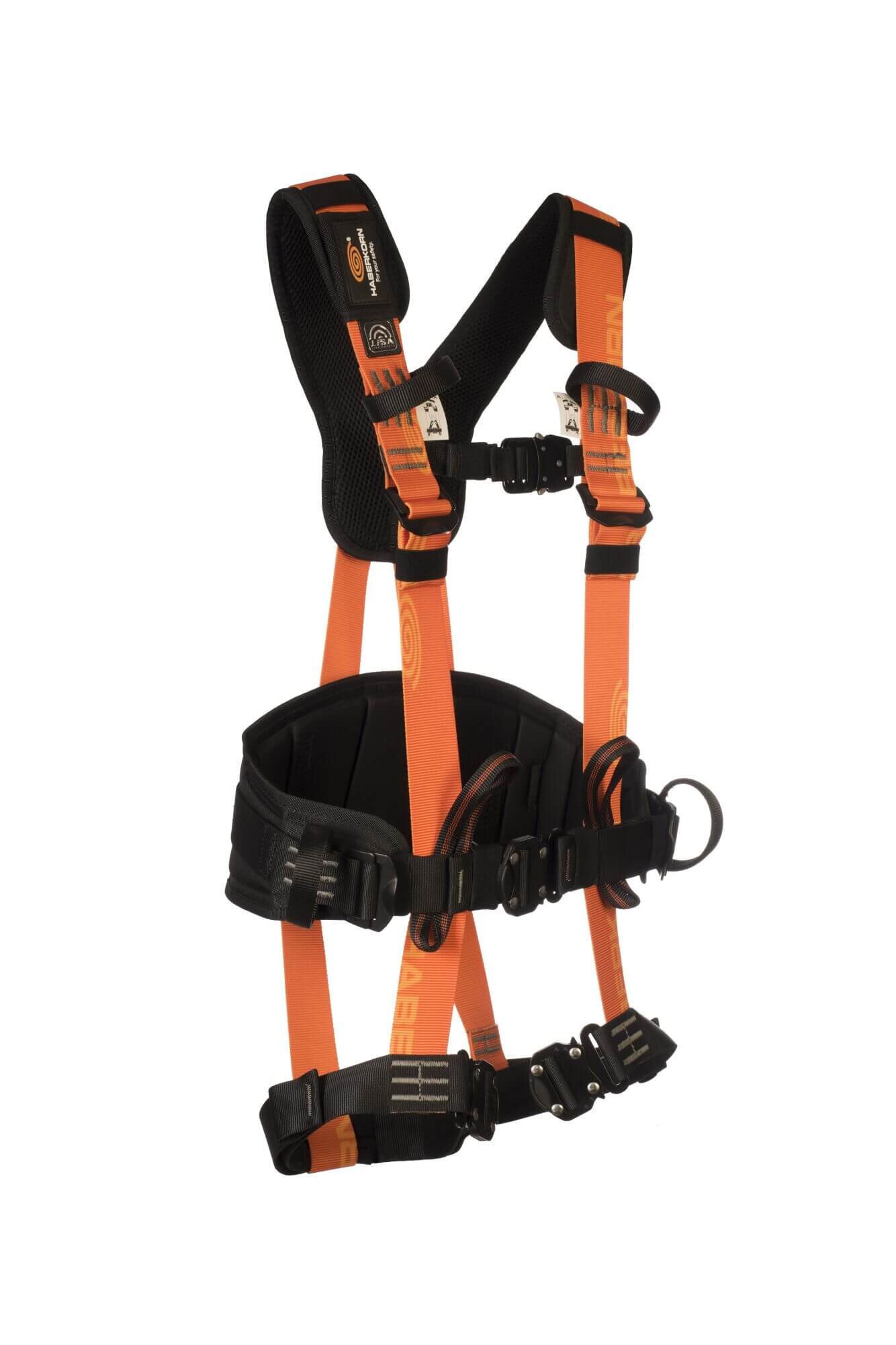 Durch seine textilen Ösen bleibt der Gurt leicht. Die Konstruktion ermöglicht es den Gurt wie eine Weste anzulegen.