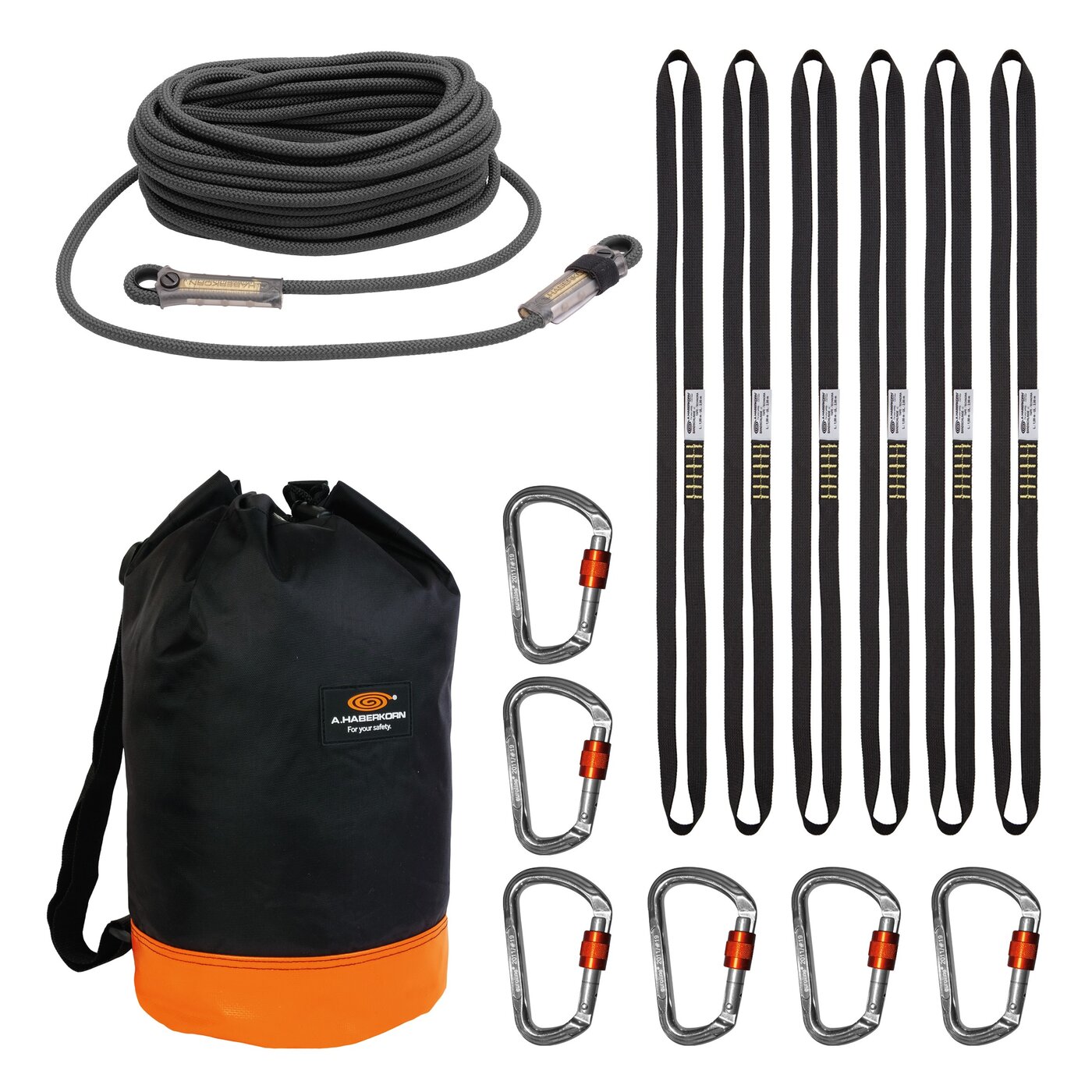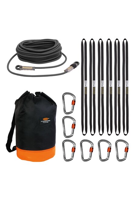 Das SET-ARAX besteht aus einem flammfesten Aramid-Seil, sowie flammfesten Bandschlingen und Karabinern aus Aluminium, das speziell zur Anwendung in Kombination mit dem Dräger Safety-Belt entwickelt wurde.
